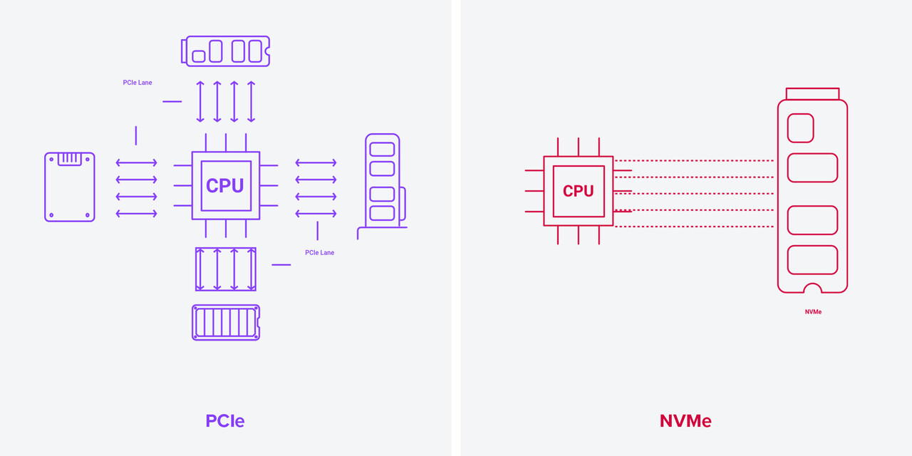 - PCIe® is the high-speed physical interface that connects devices like SSDs to a computer.